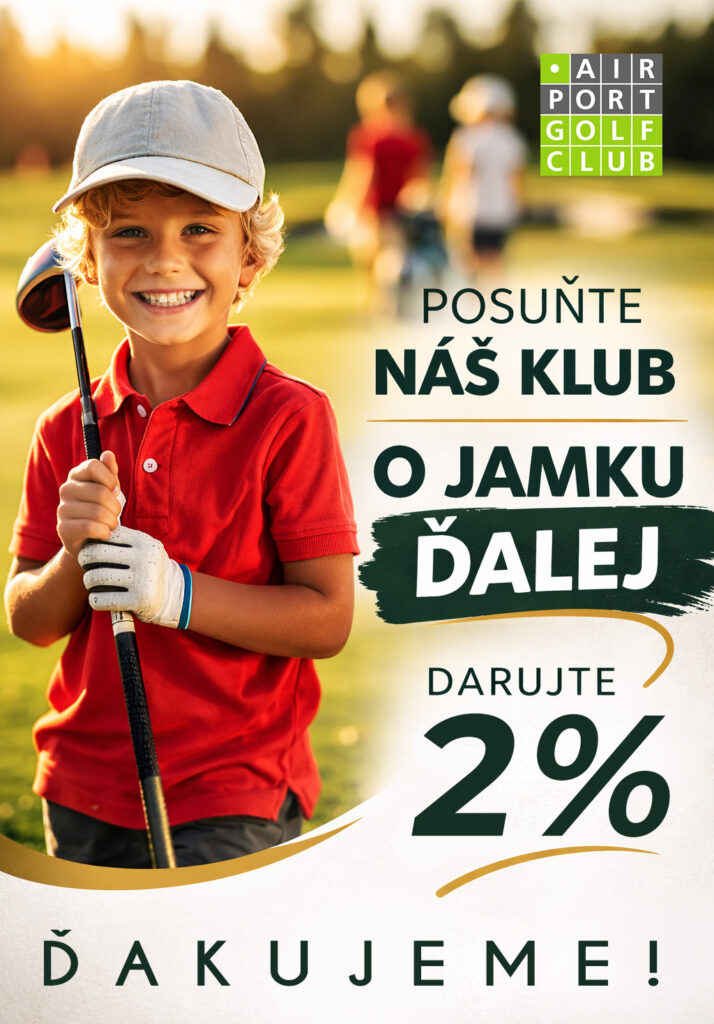 Sezóna je už v plnom prúde a ihrisko opäť žije presne tak, ako to máme radi – hrou, stretnutiami aj spoločnými zážitkami. Aj tento rok vás chceme poprosiť o podporu, ktorá vás nič nestojí, no pre nás má veľký význam – darovanie 2 % z dane. Vaše 2 % pomáhajú tam, kde to má zmysel. Na ihrisku, ktoré chceme udržiavať v čo najlepšej kondícii. Pri podujatiach, ktoré nás spájajú. Aj pri mladých hráčoch, ktorí robia svoje prvé golfové kroky. Možno je to pre jednotlivca maličkosť. No keď sa spojíme, dokáže to posunúť náš klub o kus ďalej.